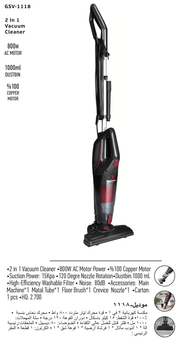 جارو پرتابل گوسونیک مدل 1118 توان مصرفی: 800 وات موتور AC تمام مس قدرت مکش 150Kpa. قابلیت تنظیم مکش: دارد – 1 سرعته درجه چرخش نازل 120. سطل زباله 100 میل نوع اتصال به منبع تغذیه سیمی میزان صدا: 80 دسی بل ارسال به سراسر کشور بسته بندی مطمئن و محکم کیفیت اصلی و تضمینی تماس 02155189501 09129238735