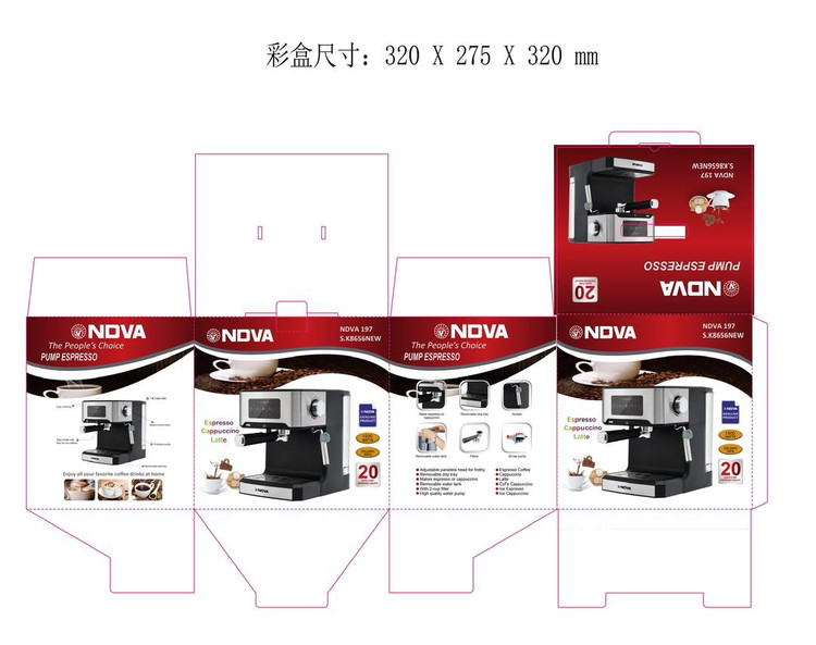 محصول 🔴نوا 20 بار اصلی کیفیت عالی 🔴تمام لمسی و دیجیتالی 🔴قهوه ساز کاپوچینو کافه لاته کف شیر 🔴جنس عالی و کیفیت تضمینی 🔴شکل جداگانه و شیک مخصوص هر خانه و کافی شاپ اسپرسوساز برند نوا فشار 20 بار و 1200 وات مدل NOWA 158