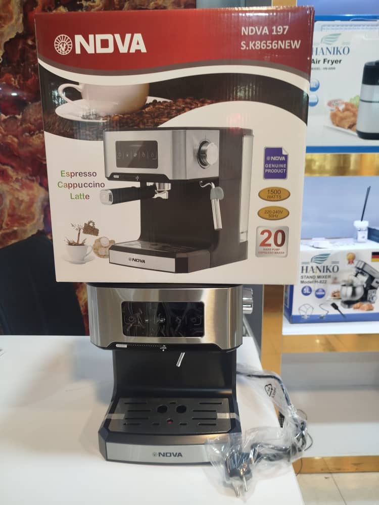 محصول 🔴نوا 20 بار اصلی کیفیت عالی 🔴تمام لمسی و دیجیتالی 🔴قهوه ساز کاپوچینو کافه لاته کف شیر 🔴جنس عالی و کیفیت تضمینی 🔴شکل جداگانه و شیک مخصوص هر خانه و کافی شاپ اسپرسوساز برند نوا فشار 20 بار و 1200 وات مدل NOWA 158